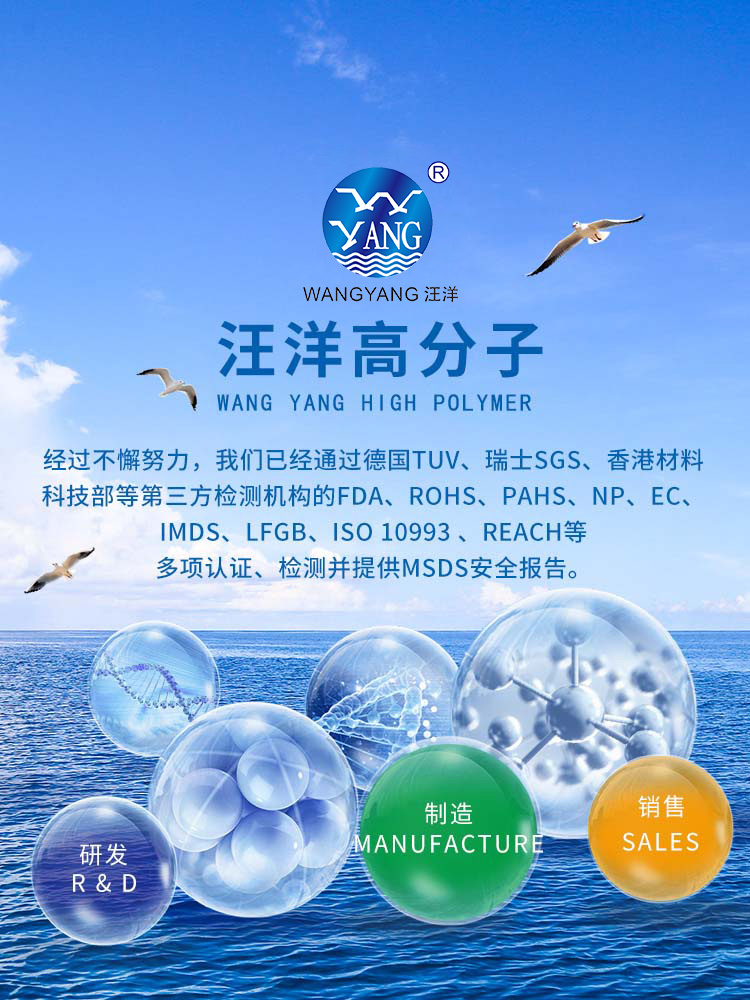 汪洋高分子創立于1999年,是一家集研發、制造、銷售熱塑性彈性體TPE系列:〈醫療器具用熱塑性彈性體TPE、雙色包覆料TPE、TPR、TR、TPV、TPU、TPEE、TPAE〉;聚氯乙烯PVC系列:輸血(液)器具用軟聚氯乙烯塑料、NPVC水晶透明料、TPVC彈性料、啞光料);工程塑料系列:〈聚酰亞胺PI、聚醚酰亞胺PEI、醫用透明抗低溫PP、熔噴PP專用料、PP降溫母料、醫用透明PA、PA6、PA66、PC、PC/ABS、PBT〉合金、合金電鍍級、增強、阻燃、增韌、填充;增韌母料系列;WYANGBIO改性生物降解塑料(PLA)系列;WYANGCLEAN螺桿清洗劑系列等產品的高新技術企業。